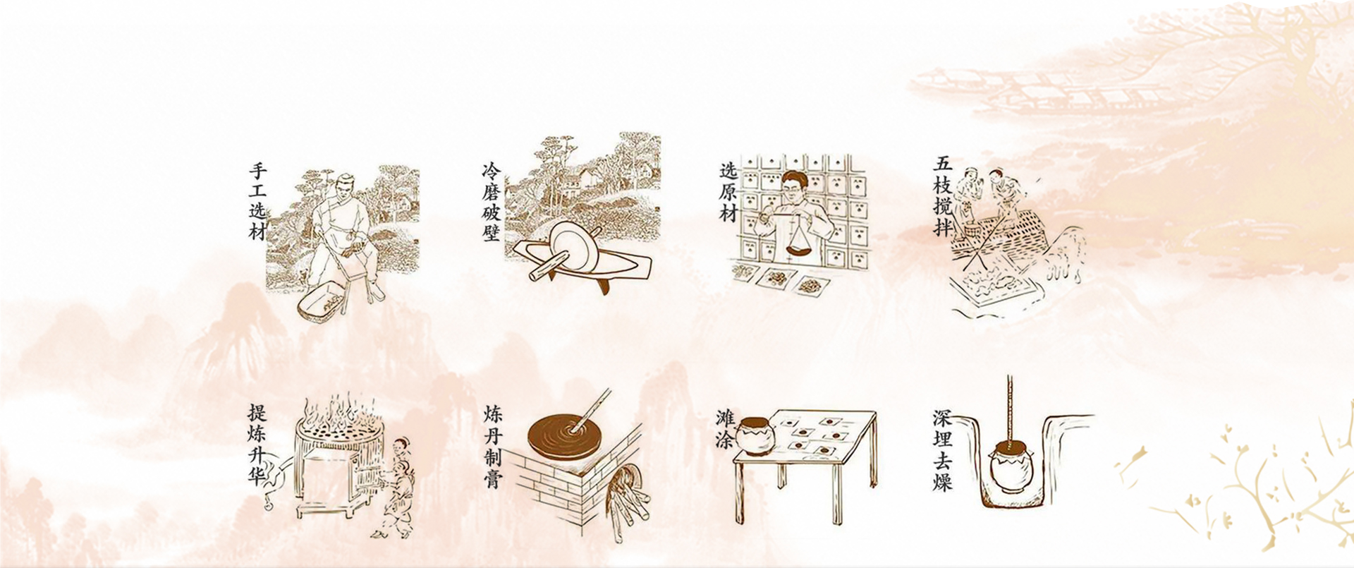 老包家黑膏药源远流长,核心配方包含十几味 珍惜药材以及西域矿石药材,依据药材本性, 遵循阴阳五行之规律,选用日采夜制,正午成 音之法,自成一体,遂成流传数百年之名方。